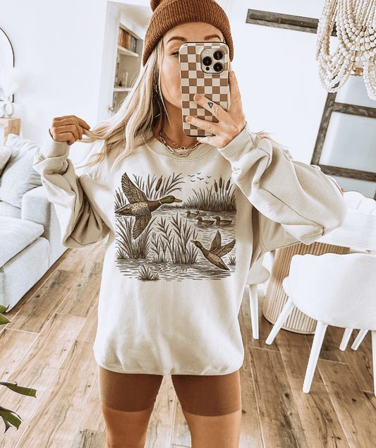 Retro Duck Scene - Cream - Sweatshirts & T-Shirts