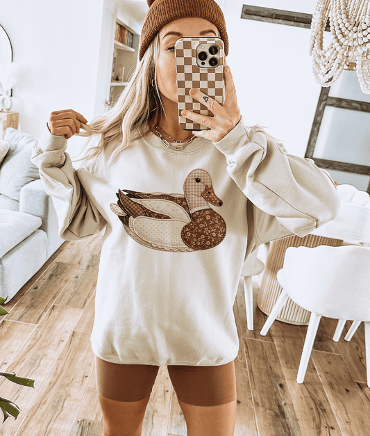 Mimis Vintage Faux Patchwork Brown Duck - Cream - Sweatshirts & T-Shirts